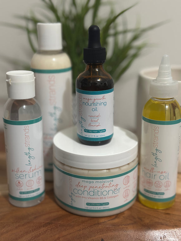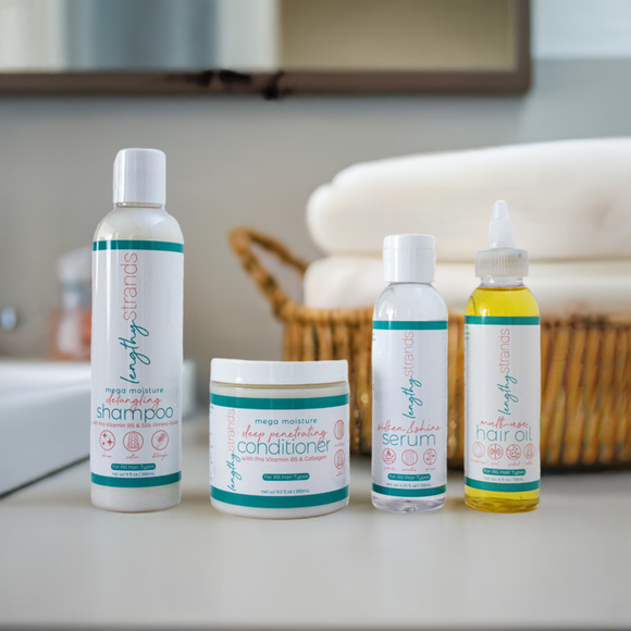 At Lengthy Strands, we believe healthy, flourishing hair begins with moisture. Our formulas are designed to deeply hydrate first β strengthening, protecting, and setting the foundation for real, lasting growth.